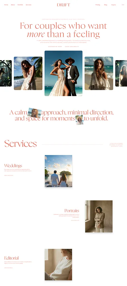 Drift is a calm, editorial website template designed for creatives who want their work to feel natural, considered, and quietly confident.